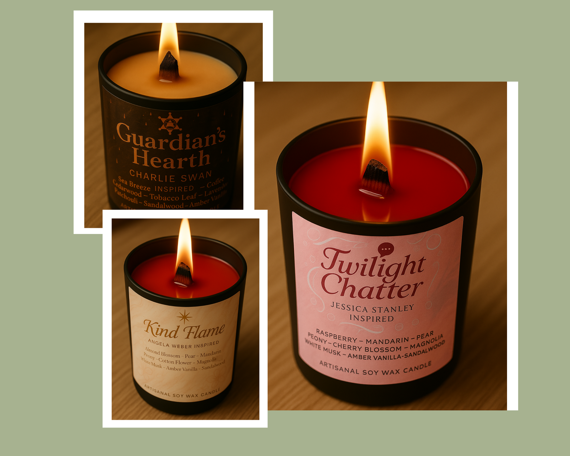 Le Pack Humains de Forks réunit l’intégralité des bougies inspirées des personnages humains emblématiques de Twilight. Sept créations exclusives qui incarnent l’amitié, la loyauté, la fragilité et la lumière de ceux qui entourent Bella à Forks. Ensemble, elles composent un cercle intime et réconfortant, reflet des liens précieux qui persistent même dans l’ombre des immortels.