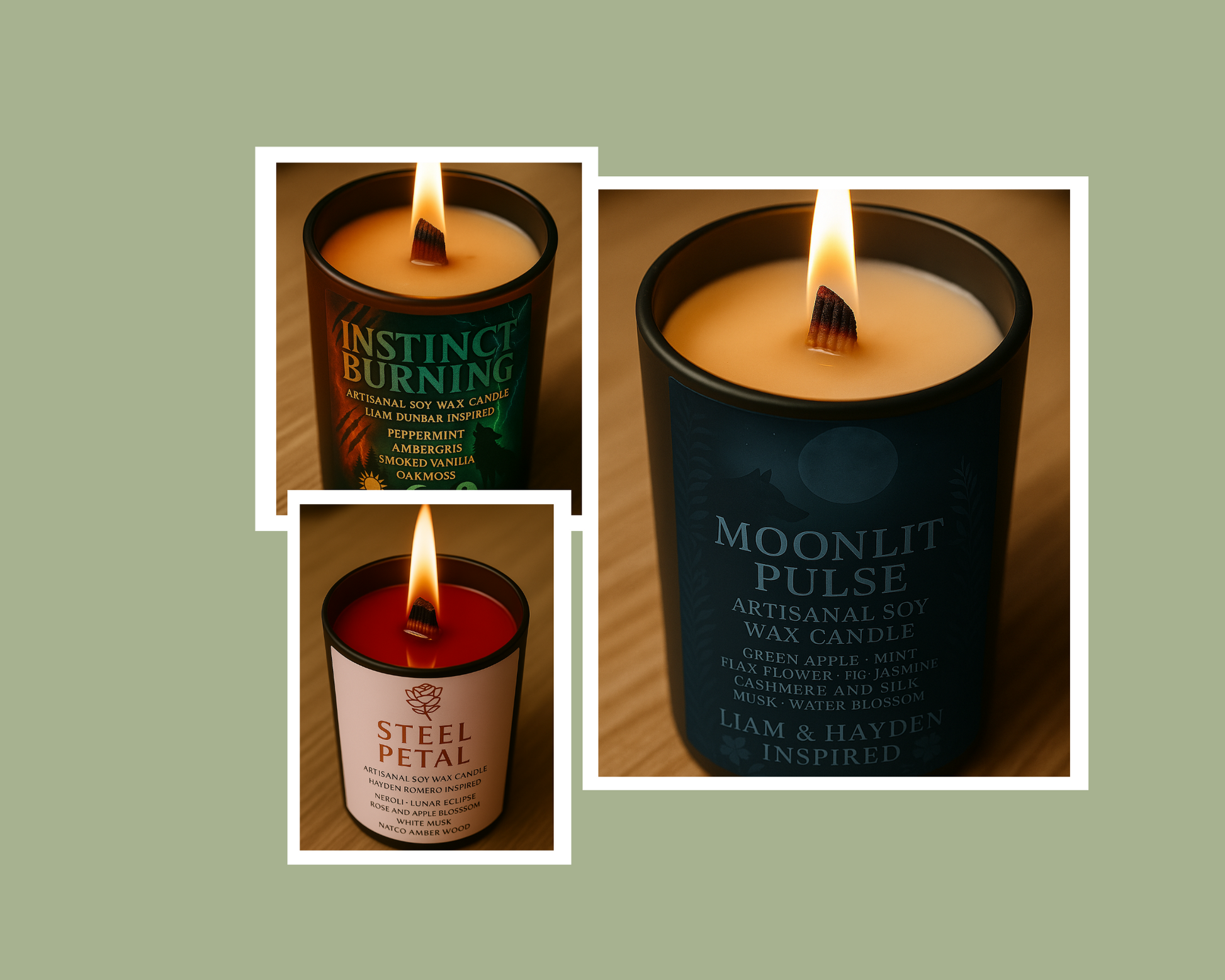 Instinct Burning, Steel Petal et Moonlit Pulse forment un trio de bougies dédié à Liam Dunbar et Hayden Romero, deux âmes adolescentes déchirées entre peur, loyauté et amour. Lui, impulsif, loyal et protecteur, cœur brûlant toujours au bord de l’orage. Elle, fragile mais résiliente, douce et tranchante à la fois, prête à survivre dans un monde brutal.